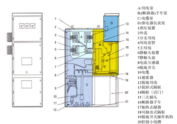 1.櫃體:由殼體、電器元件(包括絕緣件)、各種機構、二次端子及連線等組成。